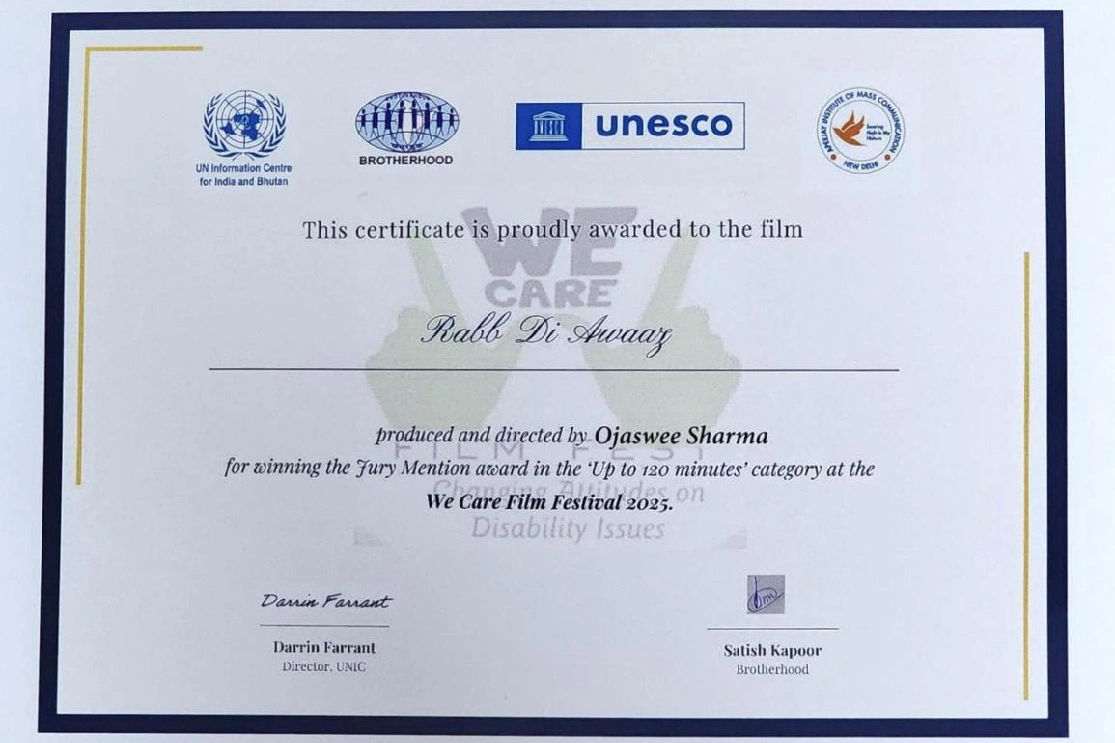• Special Jury Award (Under 120 minutes) for the Film Rabb Di Awaaz by United Nations, UNESCO and Brotherhood at We Care Festival 2025 held in New Delhi.