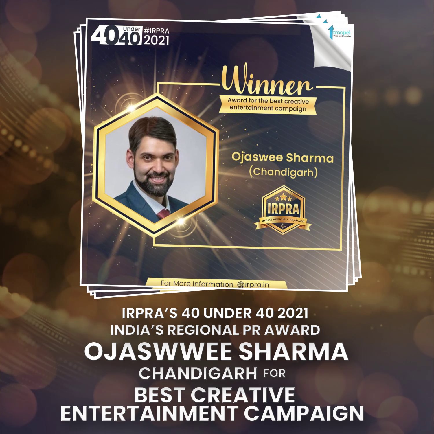 • IRPRA’s 40 Under 40 Award 2023 – India’s Regional PR Awards (IRPRA), Best Creative Entertainment Campaign (Region: Chandigarh) (2023)